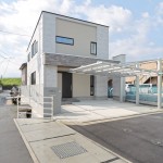10区画弱のミニ開発団地の中の1区画。北東角地で南東~南~南西には駐車場や賃貸住宅が建ち並ぶという難しい条件の土地です。土地の広さは40坪と広めですが、間口が狭く奥行きが長い…車も少なくとも大型2台駐車が必要ということで、2階リビングを選択したいところです。