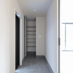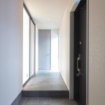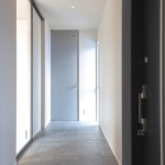 ホテルライクで余裕を感じる玄関スペース案は採用頂きました。リビングへの入口はサンワカンパニーのクアドロスリム。