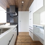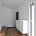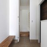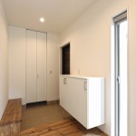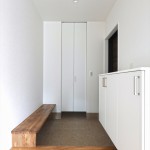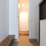 玄関からシューズインクロークを通ってダイレクトにキッチンに繋がる家族用の裏動線を設けた。