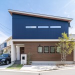 T邸では、1階は木目と石目の窯業系サイディング、2階は金属サイディング(ガルバリウム鋼板)と素材を変えた仕上げを選択しました。