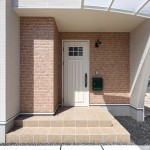 レンガ調のアクセントをあしらって、シンプルながらもどことなく可愛らしさを醸す、安定した箱型の外観デザイン。凹凸をつけて表情をつけ、単調にならないように配慮しました。