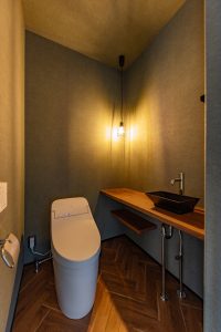 2階のトイレには、最近毎度と言っていい程の採用率の、背面用収納(写真では見えてないですが…)を採用。床面近くのコンセントはメンテナンス性を優先して左側寄せに