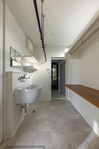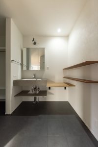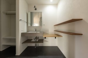 ご夫婦の生活動線が極力交差しないように帰宅動線の中に洗面台を設けた