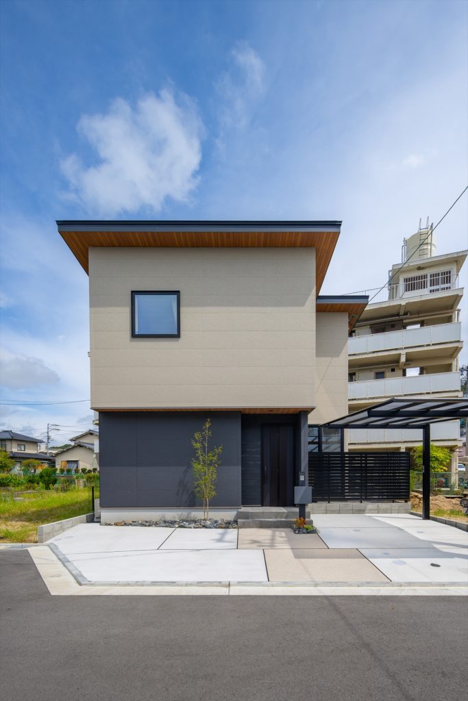 内外観ともにグレージュをベースとしたホテルライクな家